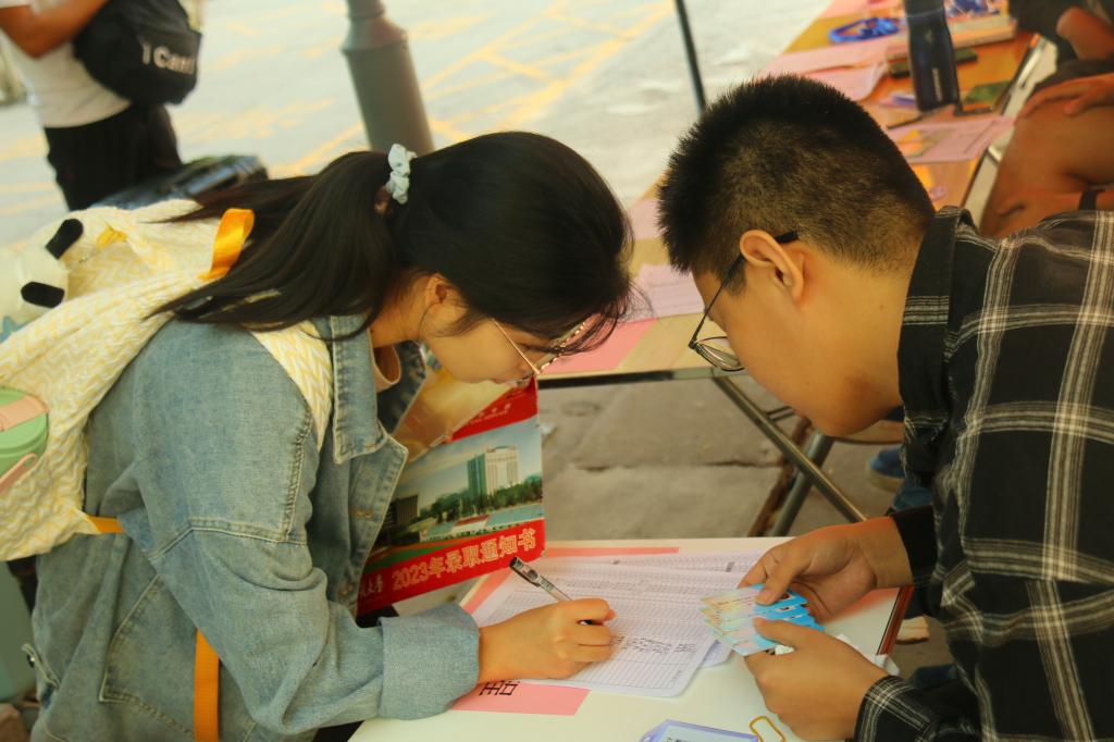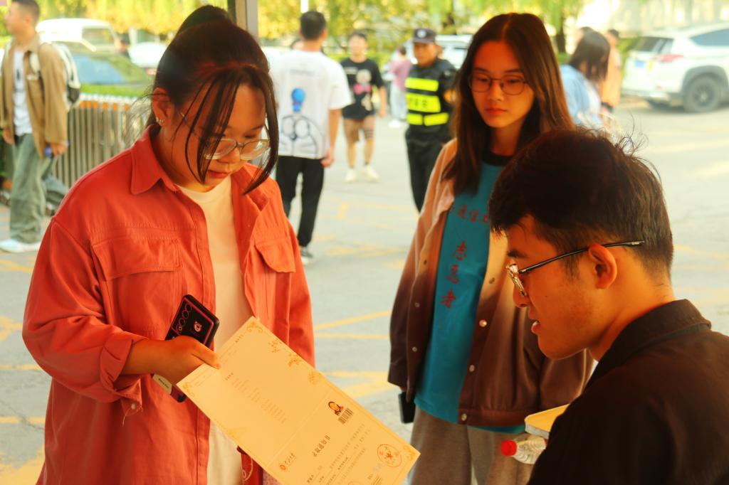 数十名志愿者从行知广场出发引导学生到宿舍楼区,协助办理入住手续以及搬运行李,一站式完成所有报到流程。