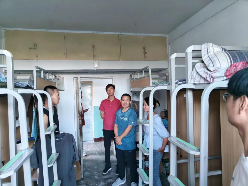 党委书记曹凤才,院长陈平,院党委副书记兼副院长魏媛媛以及各系主任、副主任,在2023级全体新生班主任的陪同下,走进学生公寓慰问新生,“老家是哪里的?”、“生活适应吗?”、“对校园的第一印象怎么样?”……院领导与新生们进行深入交流,鼓励同学们积极转变角色,熟悉校园环境,尽快适应大学校园生活。