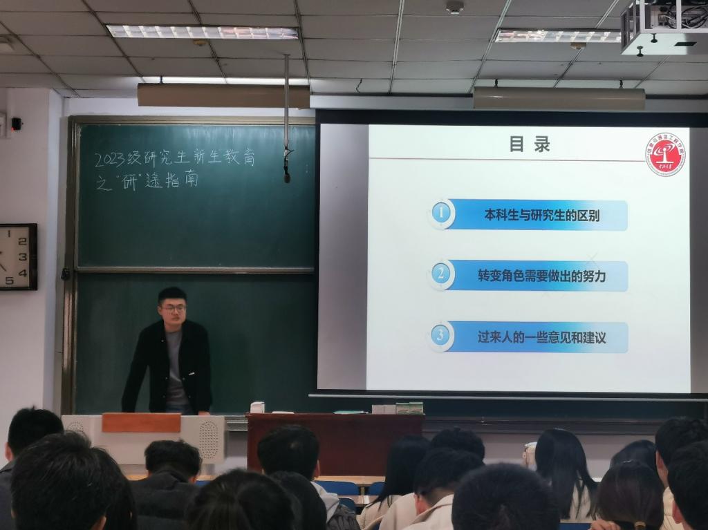 新入职青年教师李培鸿以“2023级研究生新生教育之“研”途指南”为题,为同学们分享了研究生阶段学习和科研的经验和方法。