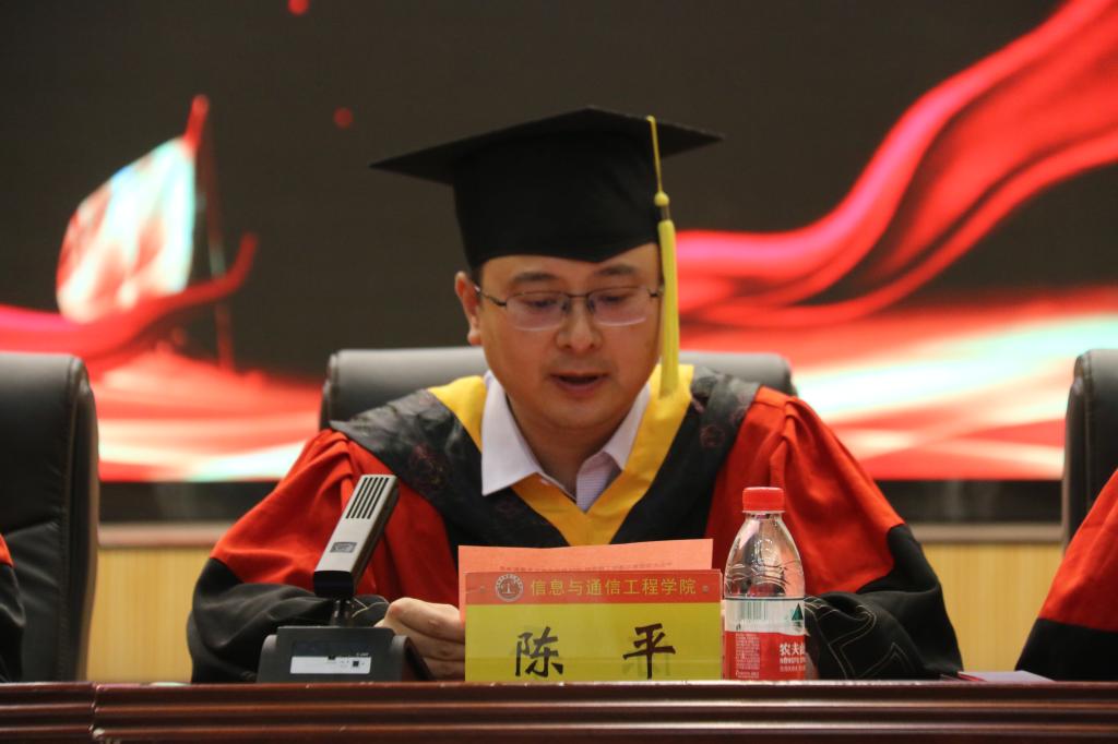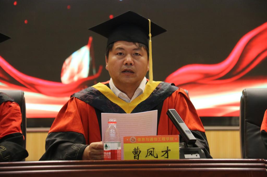 接着,毕业生代表张佳炘同学发言,她回忆了自己与信通的青春故事,感恩母校,恩师,表达了接续奋斗、回报母校、回报祖国的决心。在校生代表吴宜轩同学发言,祝愿学长、学姐们在日后事业中鹏程万里,前程似锦。教师代表孙鹏希望同学们使命在肩,做矢志报国的奋斗者;自强不息,做致知于行的践行者。