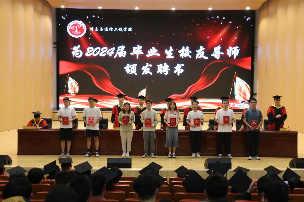 随着激昂的国歌声奏响,典礼正式拉开帷幕。院长陈平向顺利完成学业的2024届毕业生表示热烈的祝贺,并宣读“2024届优秀毕业生表彰决定”,副院长陈友兴教授宣读“2024届毕业生校友导师”聘任决定,主席台领导为同学们颁发荣誉证书和聘书。