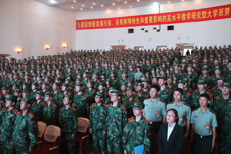 2017级新生开学典礼暨安全教育大会正式举行。院长杨风暴、院党委书记曹凤才、院党委副书记兼副院长魏媛媛、科研副院长王明泉、各学科部主任、新生班主任及各连队军训教官参加了本次大会。