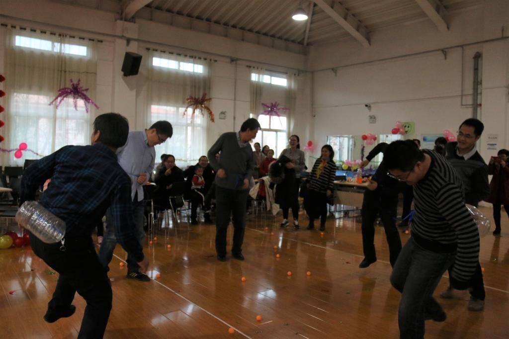 其次,由任雁、林乘庆两位老师带来歌曲《相亲相爱》,欢快的歌曲将全场气氛推向高潮。游戏“快乐传真”考验了老师们之间的默契;游戏“燃烧我的卡路里”则展示了老师们肢体的协调性,在动感的音乐中,老师们努力晃动自己的身体,千方百计将瓶内的小球晃出。林乘庆老师一首网络热播原创歌曲《回忆时光的浪》,赢得了全场热烈的掌声。游戏“接力传球”、“正话反说”引得全场爆笑不断。整个活动中还穿插了三次抽奖环节,“摇一摇”、“财源滚滚来”、“幸运之星”将性爱片