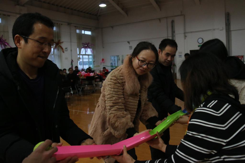 精心准备的大礼包送给12位幸运的老师。在全体教职工合唱的《相亲相爱一家人》歌声中,联谊会接近尾声。