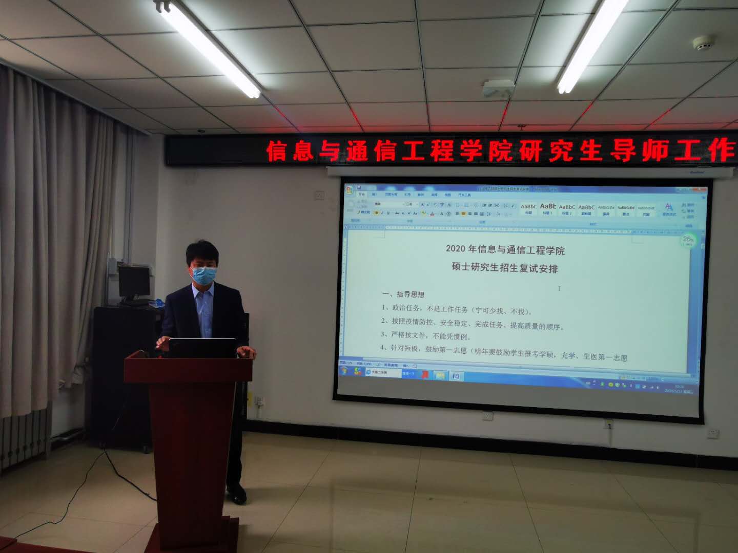 研究生导师在学科建设与评估工作的重要性,各位导师和部门要积极配合,高质量高要求完成学科评估工作;二是要认真做好研究生复试工作,确保复试工作公平、公正、公开的顺利完成;三是要做好疫情防控和事业发展两不误,两手硬。严格遵守上级部门的规章制度,疫情防控工作常态化。学科评估材料整理、毕业答辩、研究生复试、毕业生离校、非毕业班学生返校等等多项工作都叠加在五月份,希望大家主动作为、集思广益,圆满完成各项工作。