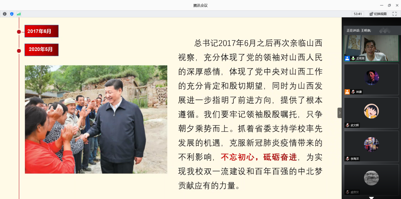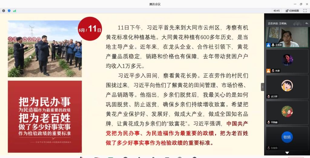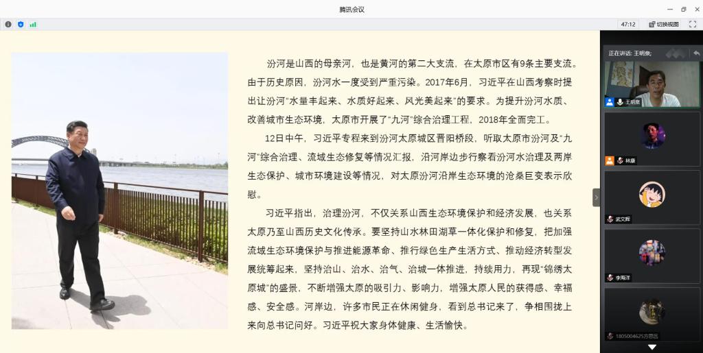 王明泉副院长在腾讯会议平台为电子信息工程专业师生党员宣讲了“习近平总书记视察山西重要讲话和重要指示精神”。
