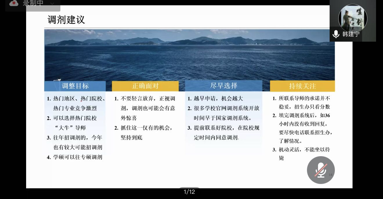 2021届毕业生考研整体情况,帮助学生分析今年考研形势,从心态调整、资源挖掘、复试技巧、英语面试技巧、线上复试注意事项等方面为同学们提供了许多宝贵经验和专业指导;建议同学们要增强自信、充分准备,即使只有一分希望,也要尽百倍努力;要认知自我、合理规划,理性选择,不随波逐流、不逃避畏难。