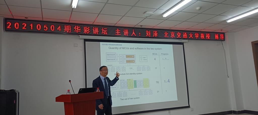在报告中刘泽教授介绍了电磁层析成像(EMT)理论、展示了自主研发的EMT实验系统和EMT样机,并以“电磁层析成像(EMT)铁轨探伤系统”和“信号灯加刹车系统”两个实际应用介绍了高可靠测控系统的设计原则、设计思路和应用效果。最后向大家介绍了北京交通大学先进控制系统实验室的研究方向、研究成果、文化建设等。