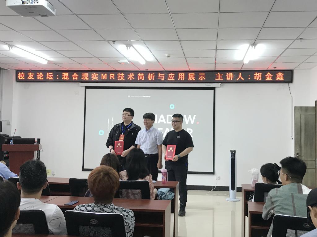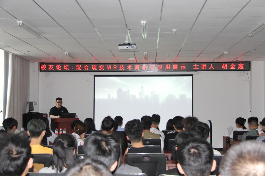5月18日下午,在80周年校庆到来之际,校友胡金鑫应邀返校做了题为《混合现实MR技术简析与应用展示》的分享论坛。该论坛由院党委书记曹凤才主持。胡金鑫2009年毕业于性爱片