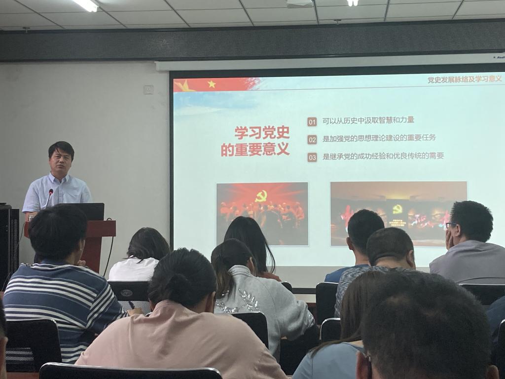 党委书记曹凤才为全院师生党员上了一堂生动的党史学习教育专题党课--党的百年光辉历程。全体党支部书记和师生党员代表参加了学习。