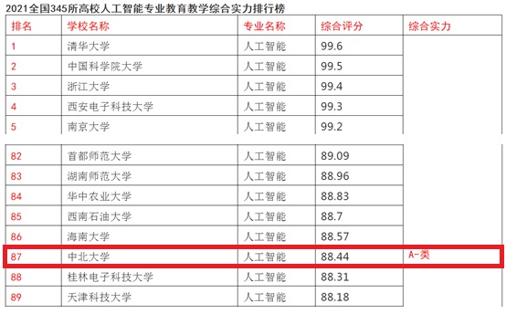 “人工智能”专业综合实力A-(前26%,87/345),居于山西省高校之首。