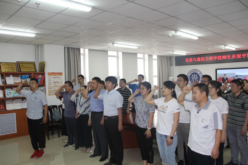 党委书记曹凤才、党委副书记魏媛媛及300余名师生党员共同收看了大会盛况直播、认真聆听了习近平总书记的重要讲话。