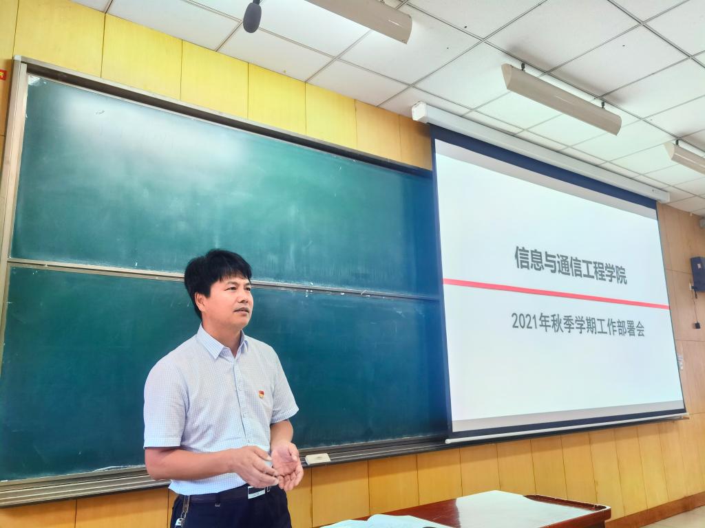 在11308H教室召开2021年秋季新学期工作部署会。全体院领导、各系主任、副主任、科级干部及全体教师出席,会议由党委副书记魏媛媛主持。