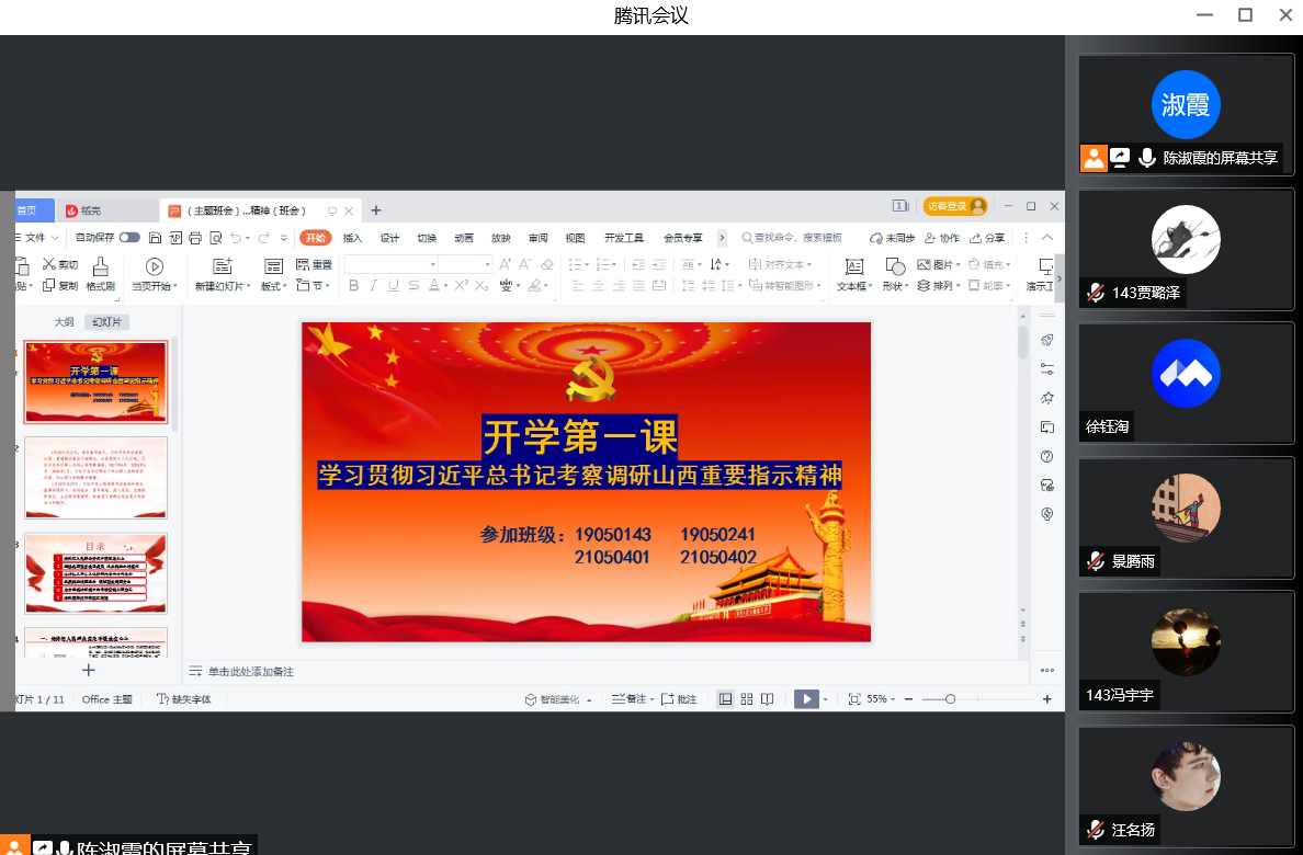 为充分调动广大学生的积极性和主动性,确保习近平总书记重要讲话精神传达到每一位学生,各班级在开展主题班会之前,党员在班级中做了充分宣传,转发总书记在山西的暖心话语、走访图片、视频资料等,发挥党员先锋模范作用,带头积极学习重要指示精神。