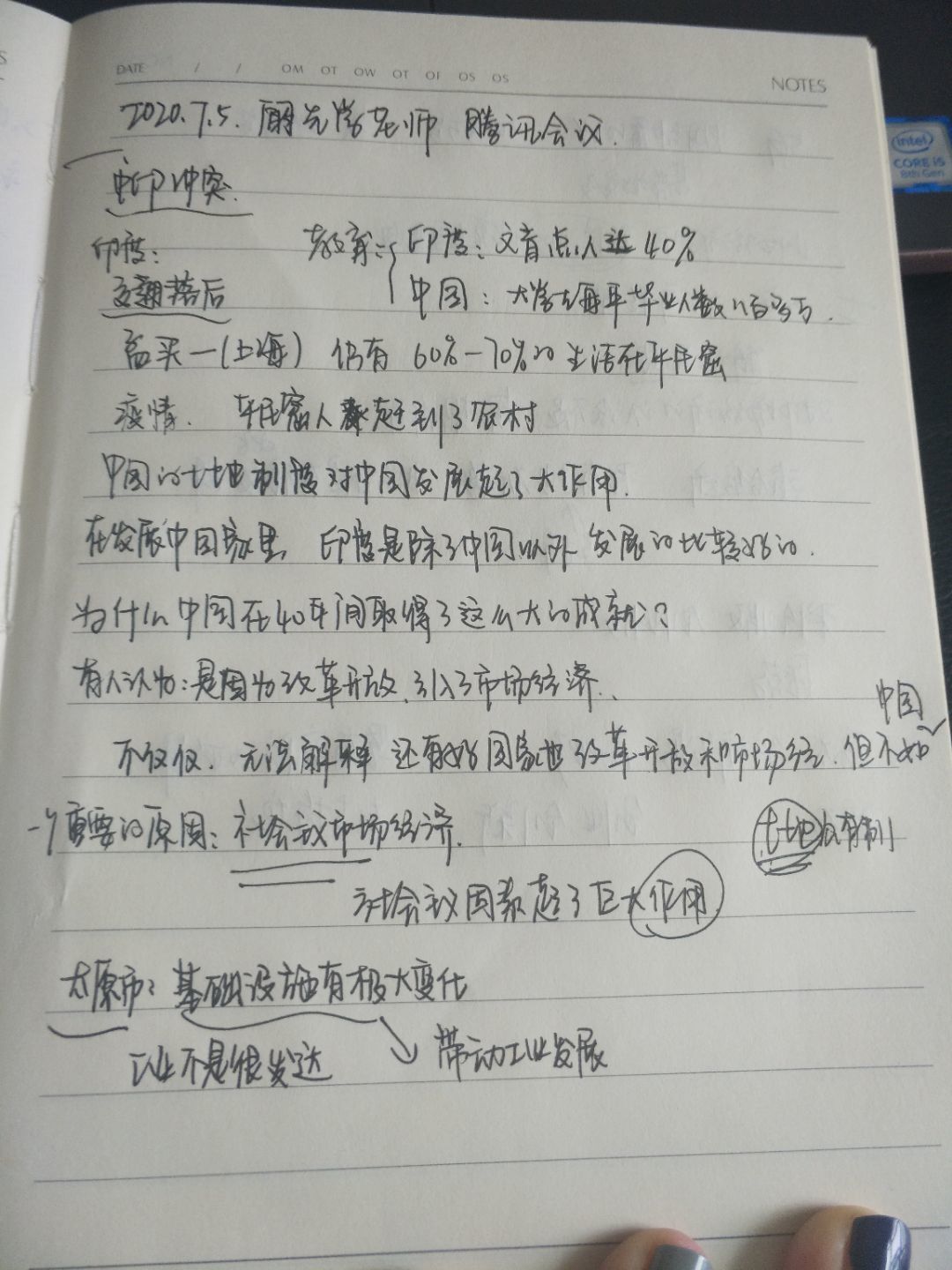 首先,阚老师以中印在教育、经济方面的对比;中美疫情防控措施和态度的对比;中美贸易战;通信基站建设等为例,客观形象地分析了中国发展速度如此之快的原因,关键因素是中国特色社会主义制度的优越性使我国率先走在了发展中国家的前列。习近平总书记在视察山西重要讲话中强调,新形势下要切实增强党内政治生活的政治性、时代性、原则性和战斗性。我们要按照习近平总书记的要求,紧紧抓住理想信念这个根本,增强“四个意识”、坚定“四个自信”,把讲政治贯穿于党性锻炼和开展工作全过程,坚决以习近平新时代中国特色社会主义思想为指引,坚定不移走中国特色社会主义道路。