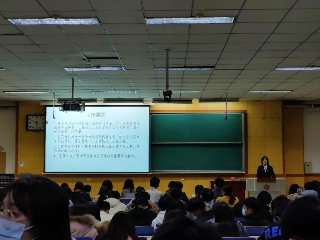 党委召开了“党员疫情防控志愿服务动员大会”,院党委书记曹凤才、党委副书记魏媛媛、学生党支部书记和全体学生党员参加了会议。