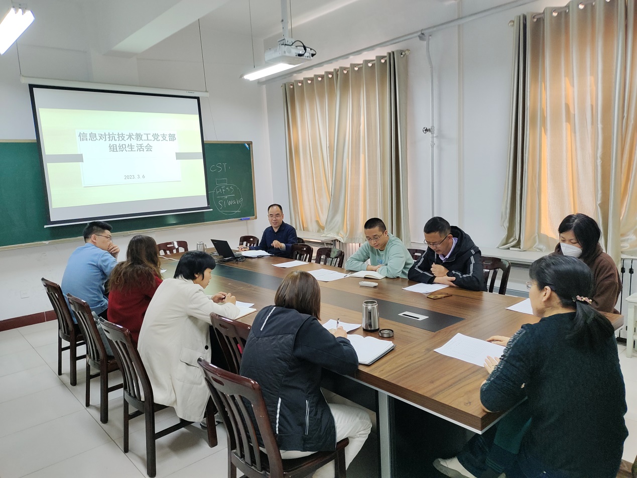 2023年3月6日下午,根据院党委的工作安排,信息对抗技术教工党支部在无损检测楼603党群活动室召开全体党员大会,进行基层党组织组织生活会和民主评议党员活动。