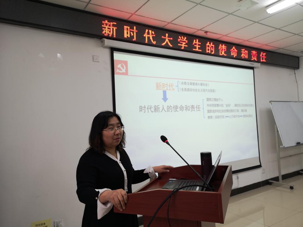 曹老师首先以“中国特色社会主义进入了新时代”为切入点,指出了从现在到2020年是全面建成小康社会的决胜时期,开启了全面建设社会主义现代化国家新征程。这是中国特色社会主义的新时代,更是每一名青年学生的新时代。随后曹老师以“时代新人的使命和责任”为中心,“国势之强由于人”,告诫作为新时代的青年学生党员要时刻明确自己的使命和责任,把个人命运和民族复兴紧密联系,自觉担当起社会主义建设者和接班人的历史使命,努力成为实现中华民族伟大复兴的生力军,肩负起国家和民族的希望。接着曹老师以“正确认识中国共产党”为论点,以“C919大飞机”的研发试飞成功、“中国高铁”的快速稳步发展、“汶川灾区”的震后重建工作等为例证,中国共产党是中国特色社会主义事业的领导核心,只有坚持中国共产党的领导,才能始终保持现代化建设的社会主义方向;才能维护国家的统一、民族的团结,并为社会主义现代化建设创造稳定的社会环境;才能最广泛、最充分地调动一切积极因素搞好社会主义现代化建设,实现中国梦。