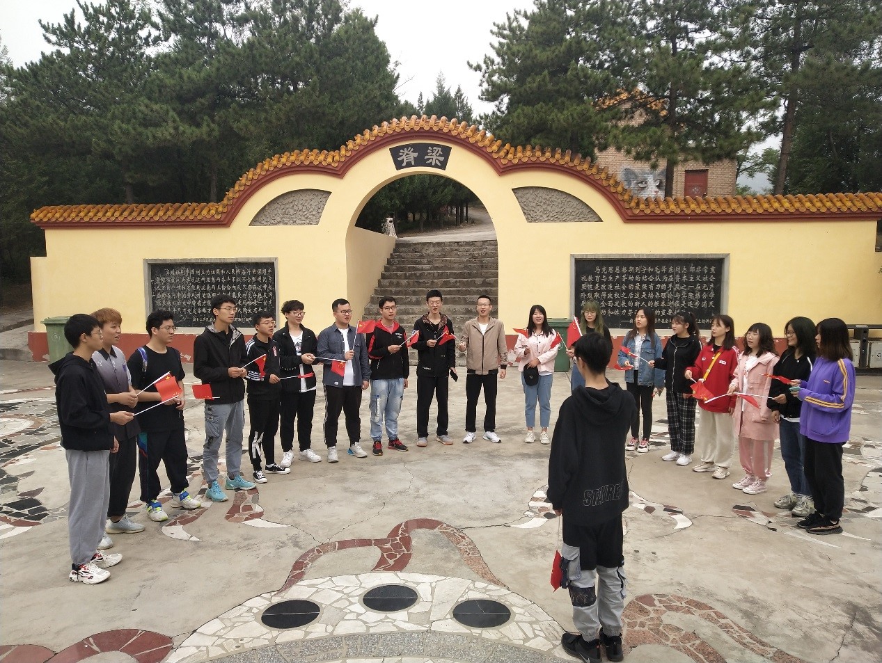 相聚于二龙山巅,各位同志极目远眺,概览中北之盛景,心中不禁激荡万千。在长廊中,多位党员分享了自己记忆深刻的那一段新中国崛起历程,引起了大家的热烈交流与讨论;随后,由副书记为大家讲解共产党在新中国发展中所起到的关键性领导作用,再次明确了没有共产党就没有新中国。