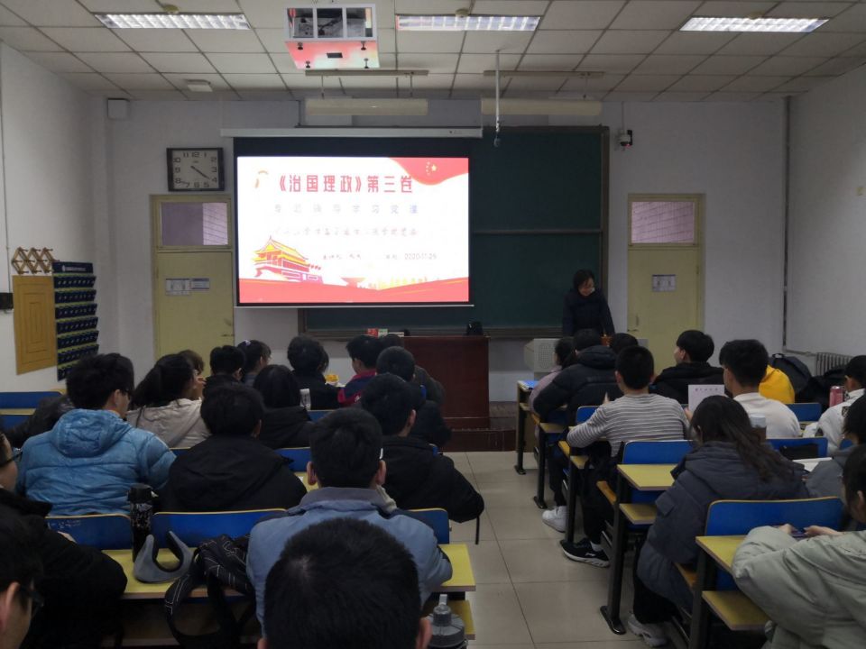 邢杰老师对《习近平谈治国理政》第三卷出版的意义、涵盖内容、学习方法进行了解读。接着,张佳淼和张天宇两位同志对第四专题《坚持以人民为中心》的两篇文章进行了领读,通过读原著、学原文、悟原理的形式,使广大同学深刻体会到我党全心全意为人民服务的根本宗旨,充分展现了以人为本、人民至上的价值取向,深刻践行了立党为公、执政为民的执政理念。