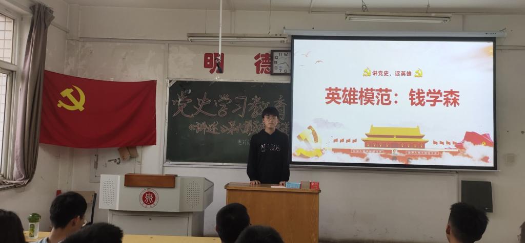2021年5月22日下午4点在11206Z教室,电子信息工程专业学生党支部举办了《讲述》第六期党史学习教育活动,本期讲述“英雄模范”的榜样故事。