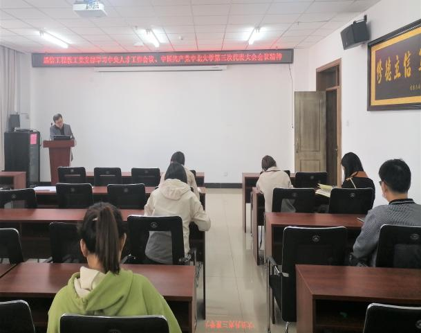 和专业发展,号召大家,要认真学习贯彻,增强“四个意识”、坚定“四个自信”、做到“两个维护”,把会议精神转化为强大动力,转化为推动工作高质量发展的思路举措,转化为生动实践,抓住机遇,冲击国家一流专业建设;教工党员积极发挥党员模范带头作用;结合现有资源充分发挥主观能动性,凝心聚力,加快“双一流”大学创建步伐。