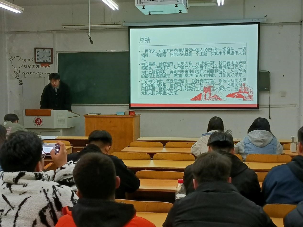 “唱支山歌给党听,我把党来比母亲……”活动最后,全体党员同声高唱《唱支山歌给党听》,优美的旋律在教室久久回荡。一首红色经典、一腔赤诚之心,深情的歌声唱出了人民在党的领导下,昂首阔步再出发的激昂之情,唱响了“传承百年志奋进新征程”的最强音。